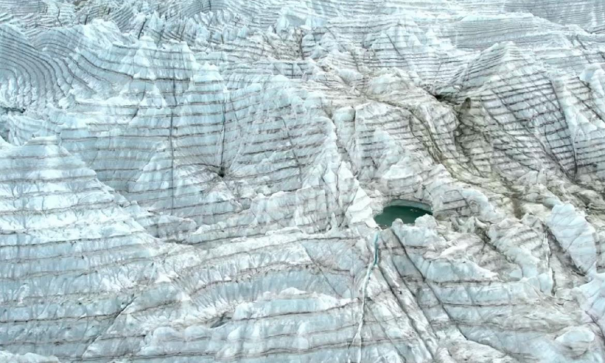 喜马拉雅山中段的岗布冰川上的冰川年层(李印清摄)