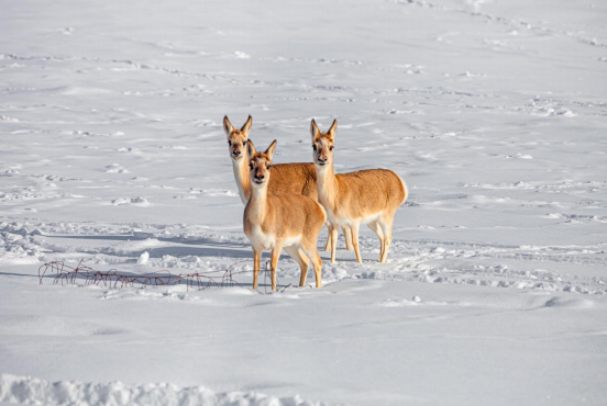 雪中的藏羚羊(尚昌平 摄)