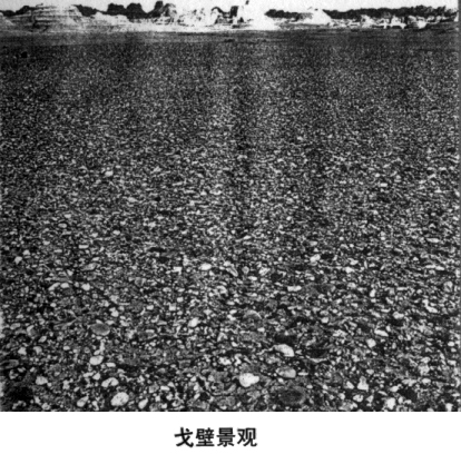 在茫茫沙海的边缘,常常是一望无际的由砾石覆盖的起伏和缓的石滩。蒙古语称其为“戈壁”,意思是 “难生草木的地方”。这是一种粗沙或砾石覆盖在硬质土层上的荒漠地形。戈壁地区,干旱多风,植被稀少。风不断地把该地区的细土和沙粒吹走了,剩下大小不等的砾石,就形成了戈壁。戈壁地区的气候与沙漠近似,极端地干旱,日照强烈,干燥酷热,蒸发量远远超过降水量。戈壁可分为风化的硬质戈壁、水成的硬质戈壁和风成的砂质戈壁等类型。此外,从颜色探浅上可将戈壁分为黑戈壁和白戈壁。