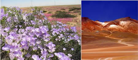 阿他加马沙漠位于南纬29度线以北,占据了智利领土很大的一部分。沙漠位于安第斯山脉以西,并沿着南美大陆的太平洋海滨呈长条状。可是,到了南回归线靠近安托法加斯塔一带,海雾带来了大量的水分,为沙漠中的植物生长提供了必要条件。多亏了海雾和“储水”的本领,许多植物存活了下来。在干旱的年份,为了生存、繁殖,生长会被推迟。