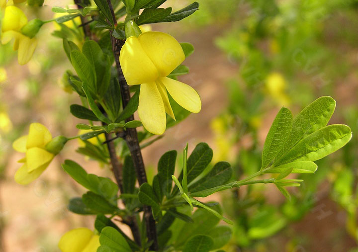 柠条为豆科锦鸡儿属落叶大灌木饲用植物,根系极为发达,主根入土深,株高为40-70厘米,最高可达2米左右。柠条叶簇生或互生,偶数羽状复叶。叶轴、托叶脱落或宿存而硬化成针刺。花单生,蝶形花冠,黄色,少有带红色。荚果椭圆形或肾形,膨胀或扁干,顶端尖。种子椭圆形或球形。树皮黄灰色、黄绿色或黄白色;种子红色。花期5~6月。果期7月。