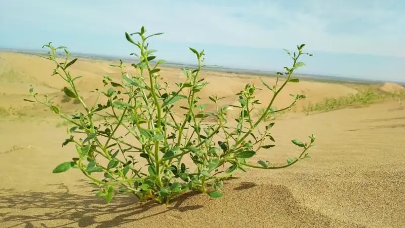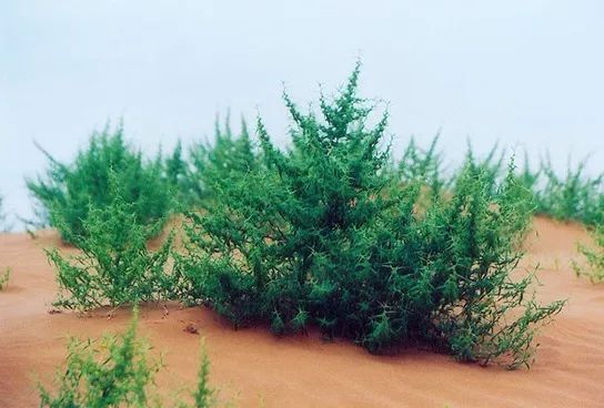 沙蓬生长在流动或半固定沙地、沙丘间的低地,是半荒漠和荒漠地区流动沙地的先锋植物。天气极度干旱时,它依然能星星点点地从沙丘上冒出叶。