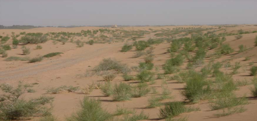 水是西北自然地理环境中最活跃的因素,有水才有绿色植物的生长,才有绿洲的形成和演化,水是绿洲形成的前提条件。西北地区水的来源有两种形式:一是沙漠被风吹蚀,地势低洼,地下水出露I二是高山冰川积雪融水以地表径流的形式伸入沙漠戈壁之中,从地图上容易发现,西北地区的绿洲多沿河分布,绿洲的形成和发育同河流的发育密切相关。西北地区地形结构是“三山夹两盆地,两山夹一走廊”,沙漠戈壁四周多高山环绕,高山上的冰川积雪融水经山麓流入沙漠,形成伸入沙漠并消失在沙漠中的内流河。河流冲积平原下部的平坦处,野生草本植物或灌丛蔓延,形成草甸生物群落,经过长期演化,出现了胡杨、红柳等树种,形成了绿洲。人类以绿洲为栖息地,垦荒造田,种植人工防护林,扩大了绿洲的范围;或人为修渠引水,沙漠上植树种草,形成人工绿洲。从卫星照片上发现,西北地区的绿洲色调多呈暗红色或褐色;实际考察也发现,许多绿洲的范围在不断地缩小。这些表明,西北绿洲多处于衰退结段。