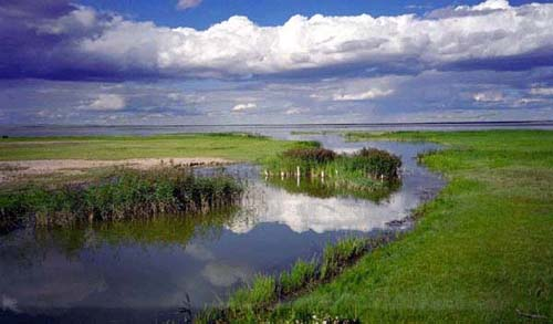 查干诺尔,蒙古语为白色的湖。位于锡林郭勒盟阿巴嘎旗汗布庙南40公里处,由东西两湖组成。湖泊面积237平方公里,总蓄水量9.48亿立方米。水深:东湖4米,西湖5米。湖的东侧有昌都河,西侧有恩格尔河及灰腾河补给,产梭鱼和鲫鱼,年产约8万公斤。湖南岸为绵延起伏的浑善达克沙地,林木葱茏,湖东、西、北三面为坦荡无垠的阿巴嘎 草原,牧草茂盛,湖畔芦苇丛生,栖息着各种珍禽。绚丽多彩的湖光草原,令人心旷神怡。