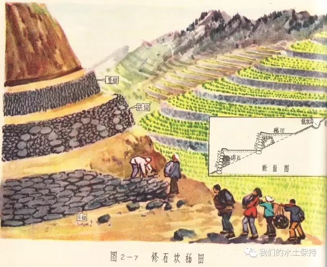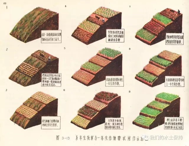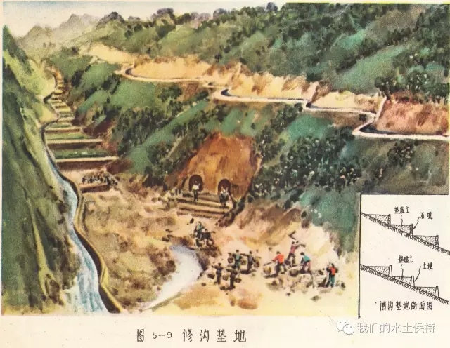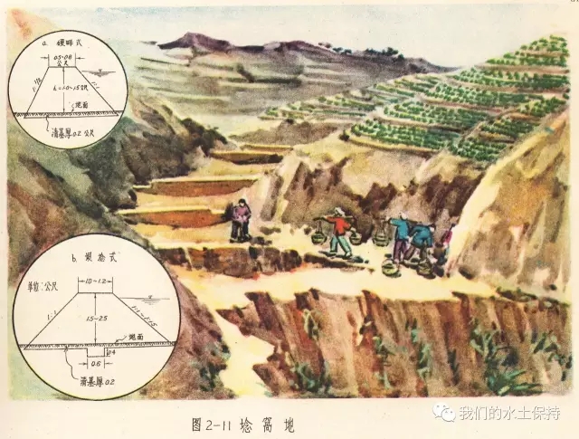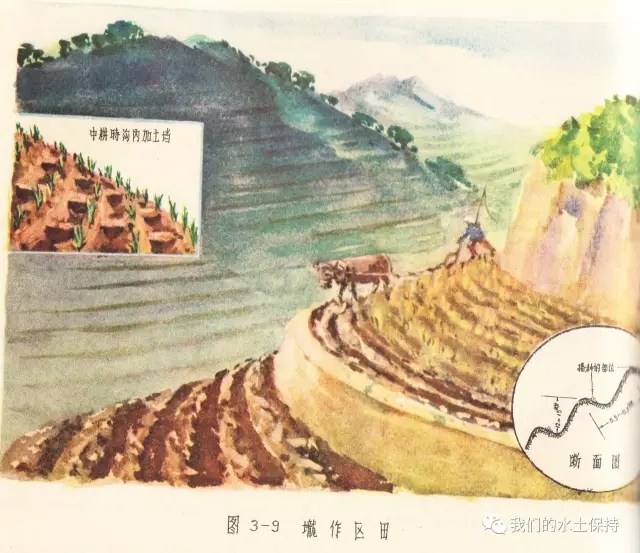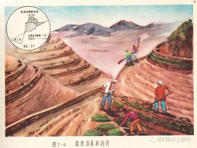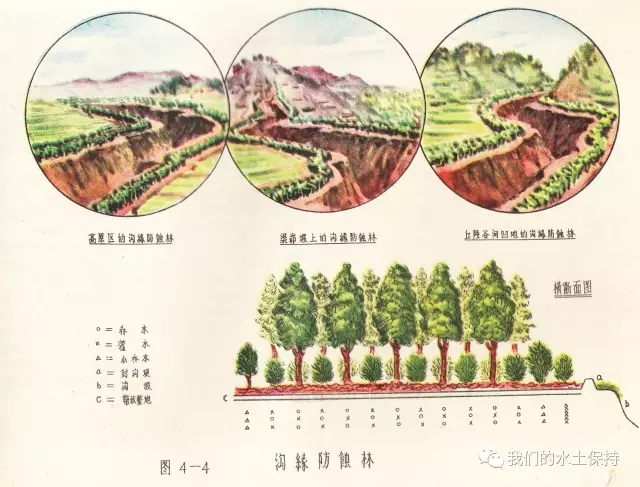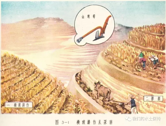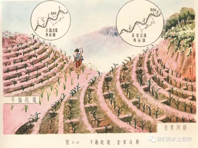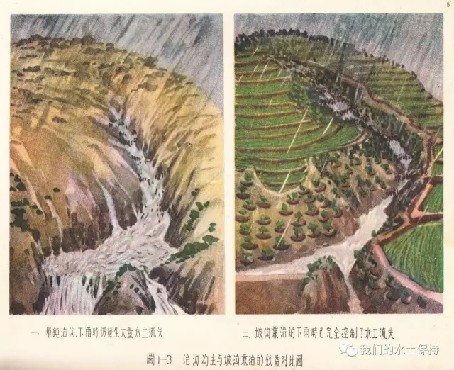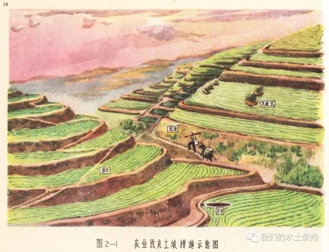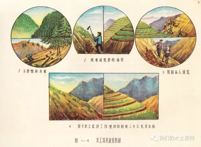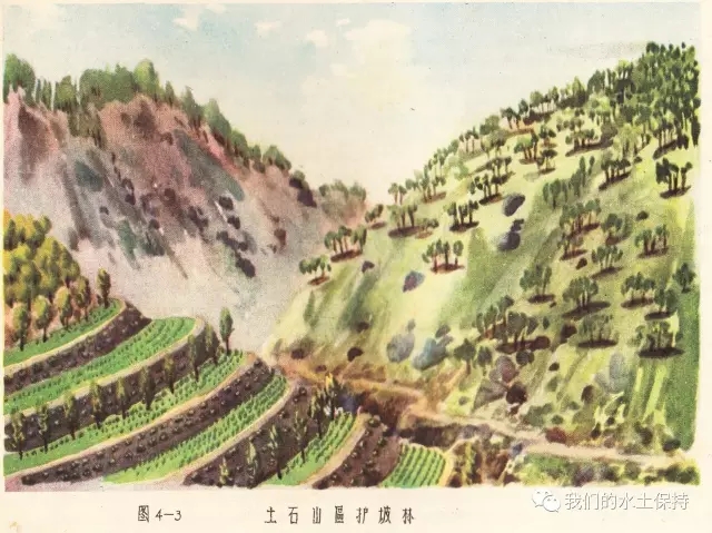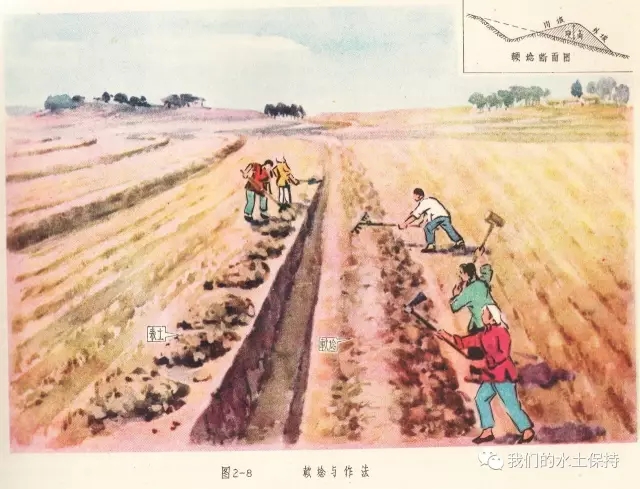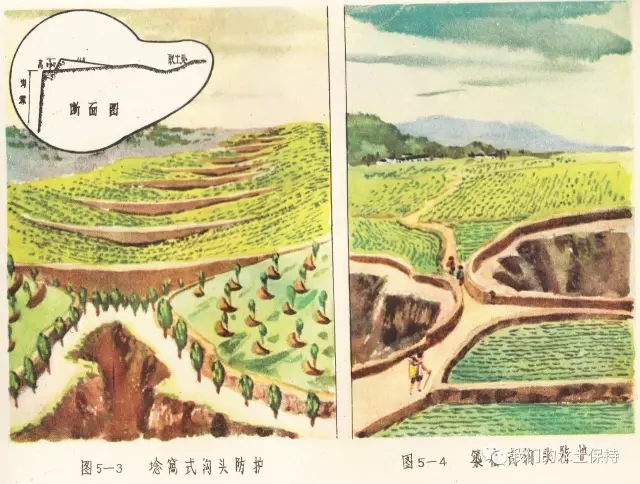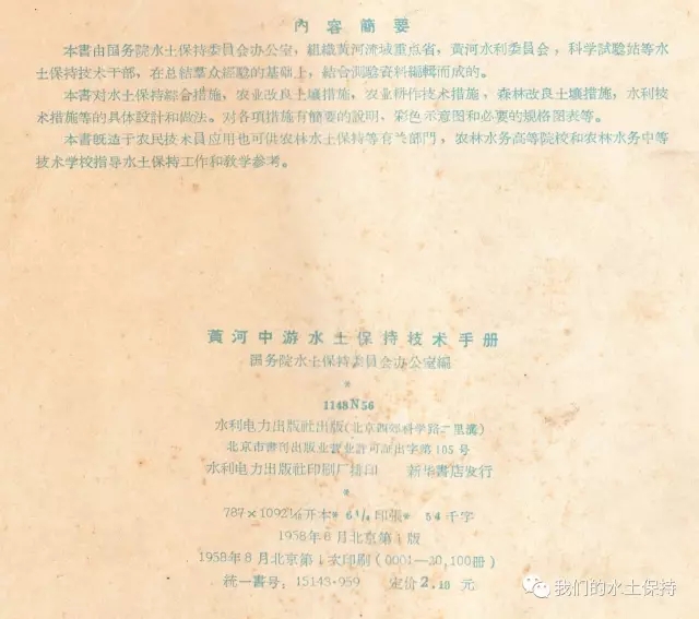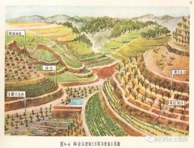 这里要介绍的内容正是1958由国务院水土保持委员会办公室编辑的《黄河中游水土保持技术手册(彩绘本)》,该书由国务院水土保持委员会办公室组织黄河流域重点省、黄河水利委员会、科学试验站等水土保持技术干部,在总结群众经验的基础上,结合测验资料编辑而成,主要内容是对水土保持综合措施、农业改良措施、农业耕作技术措施、森林改良土壤措施、水利技术措施等的具体设计和做法,并配以彩绘示意图。